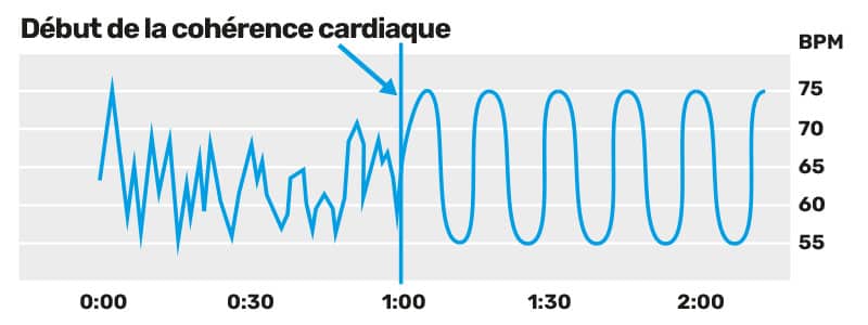 Elle rend la variabilité cardiaque (nécessaire à l’adaptation du rythme cardiaque lors des efforts) régulière et cohérente. Il y a un effet immédiat d’augmentation de la variabilité cardiaque ; la courbe devient arrondie, régulière, on dit qu’elle est cohérente en opposition au chaos préalable.
