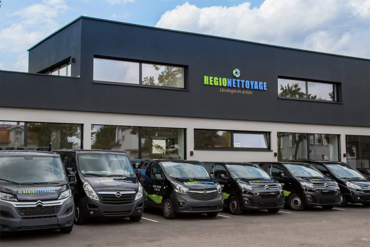 Ça peut-être les deux, en fonction des besoins du client. Par exemple votre entreprise qui a construit de nouveaux locaux, a besoin d’un nettoyage de fin de chantier et votre femme de ménage en interne n’a pas les capacités de le faire. On envoie une équipe dédiée qui fait l’intervention, qui travaille quelques jours et qui passe le relais à votre femme de ménage. Donc ça, c’est ponctuel, mais ça peut être également sous forme effectivement de récurrence. Vous êtes par exemple une concession automobile, vous nous appelez, vous avez un besoin du lundi au samedi tous les matins, on vous envoie quelqu’un. C’est une adaptabilité totale par rapport aux besoins du client. Je dis toujours qu’aujourd’hui on a la taille idéale parce qu’on est assez gros pour répondre à certains marchés, mais on est assez petits pour garder de la flexibilité et de la proximité avec nos clients. C’est vraiment notre taille qui fait notre force. Nous avons deux agences, une à Mulhouse et l’autre à Colmar. On va de Saint-Louis, avec un beau secteur dans le Sundgau, jusqu’à Sélestat. On a 20 % de croissance par an. On a la chance de pouvoir choisir nos clients, de pouvoir nous entendre avec nos clients, de pouvoir faire de magnifiques rencontres. Je suis bien comme ça et je ne veux pas m’éloigner de mes clients. Clairement je n’ouvrirai jamais une agence à Paris. REGIONETTOYAGE est une entreprise régionale locale. On ne s’agrandira pas au niveau national.